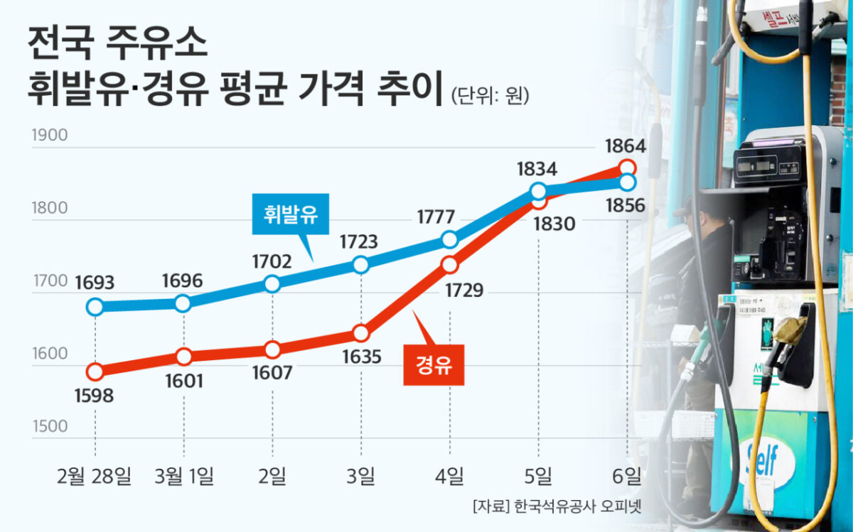 전쟁 발발 직전인 2월 27일, 전국 휘발유 평균은 리터당 1,692원이었다.